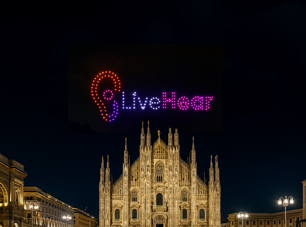 LIVEHEAR trasferisce il segnale audio del drone show con latenza zero, nel raggio di 10 km a tutti i cellulari senza scaricare nessuna app